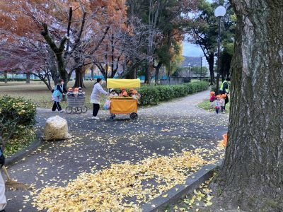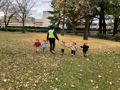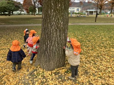 12月に入り、保育園のお隣の野一色公園の景色が変わってきました。冷たい冬の風が吹くと、