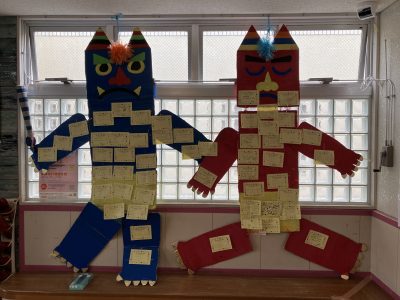 子どもたちがお家の人と相談して自分の中の退治したいおにが書かれています。