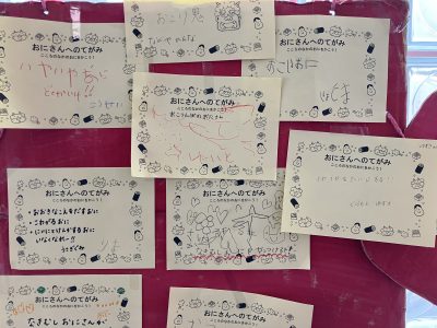 事務室前には、おにさんから「今度、長森北に会いに行く」とお手紙が届きました。