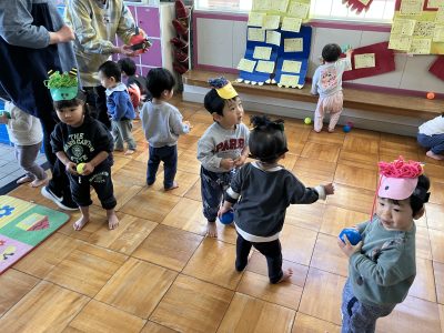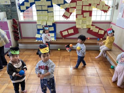 さあ、大変です。ひよこ組さんにとっては保育園で初めての節分豆まきです。