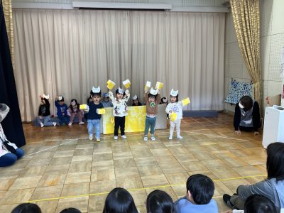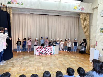観ていたぱんだ組、きりん組のお友だちもあまりの可愛さにくぎ付け、拍手喝采でした。