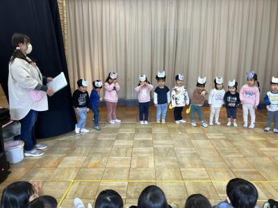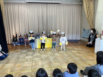 大丈夫です。今日はそのためにきりん組とぱんだ組のお友だちがお客さんになって観てくれます・