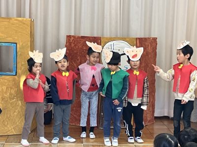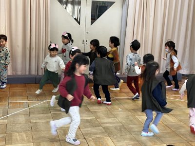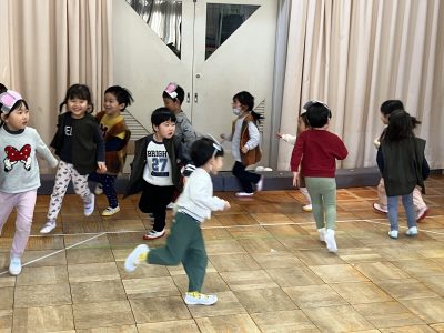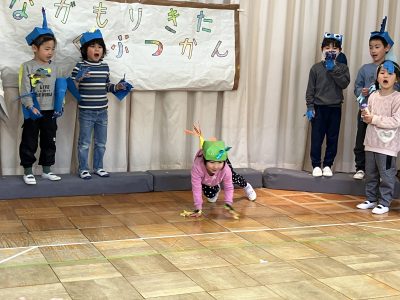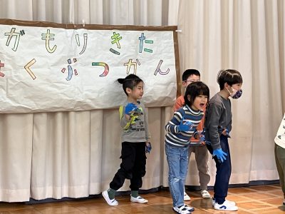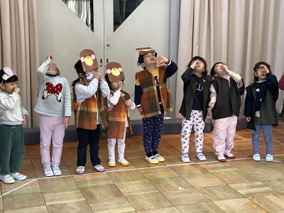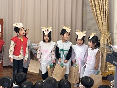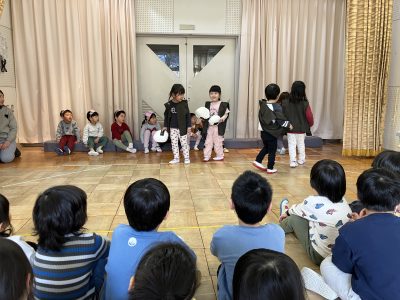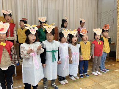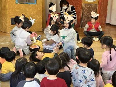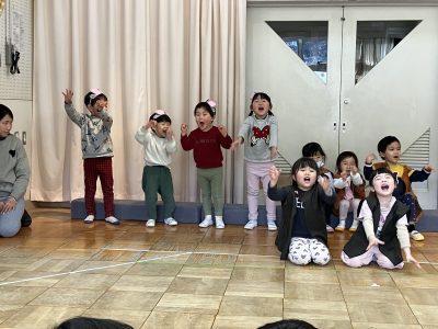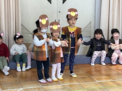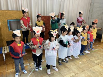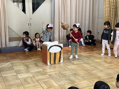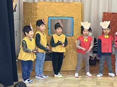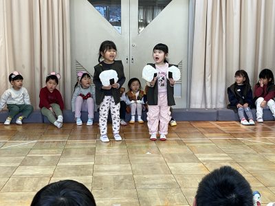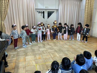園内では、2月に入ってインフルエンザが流行して、全員がそろっての発表会ごっこ遊びがなかなかできませんでした。