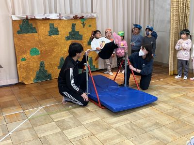 今日のお客さんは、きりん組さんです。一人一人が自分らしく表現して楽しんでいます。