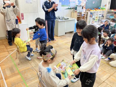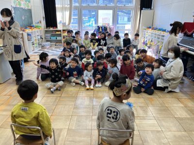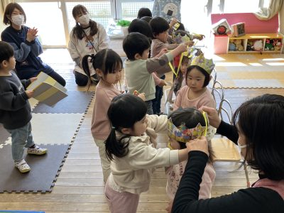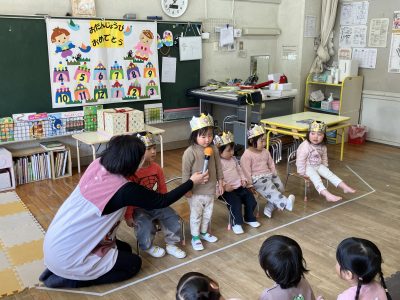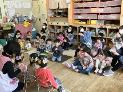 2月誕生会は、未満児クラスは5人が、以上児クラスは2人がお友だちからの祝福を受けました。