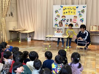 今年度は、3月が最終の誕生会、1年間に12回のとっても嬉しい誕生会です。