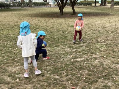 ボー投げやサッカーを思い切り楽しんでいるようです。