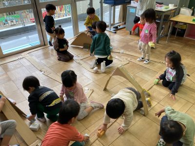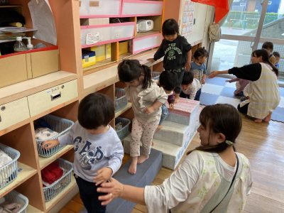 遊びの中で、様々な運動機能が高まっていきます。保育室の中がワンダーランドに変身です。