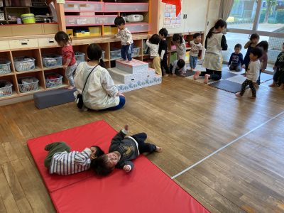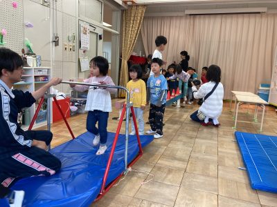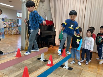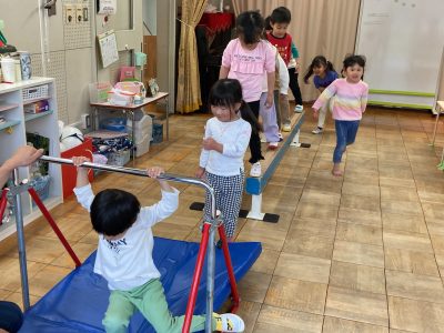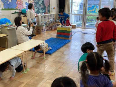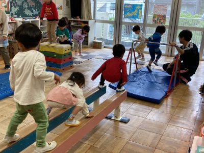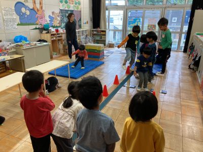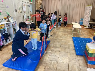 隣のきりん組では、運動系のチャレンジ遊びが大人気でした。