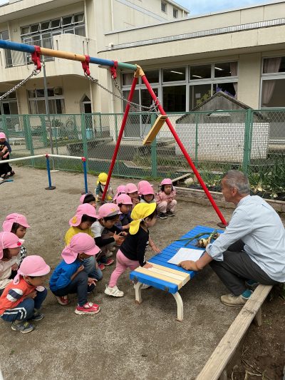 園長先生から、収穫のお話を聞いてやる気満々のきりん組さんたちです。