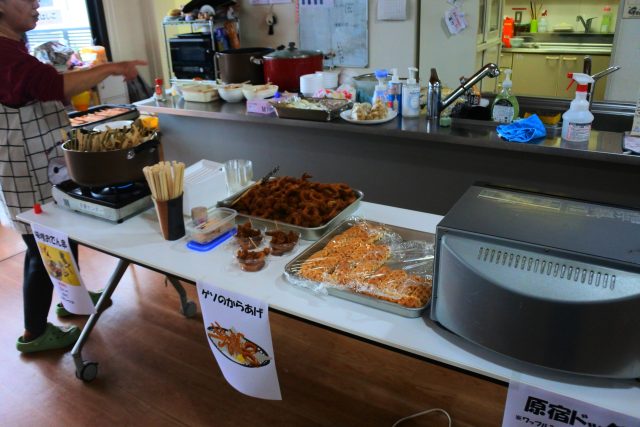 今年のメニューは、ラーメンにお好み串、おでん、ゲソの唐揚げ、原宿ドッグ