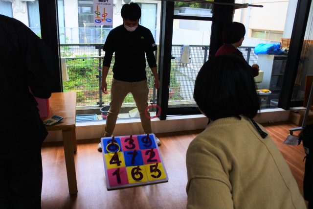 ゲームでは、得点によって景品にお菓子がもらえるとあって、皆真剣!