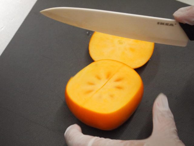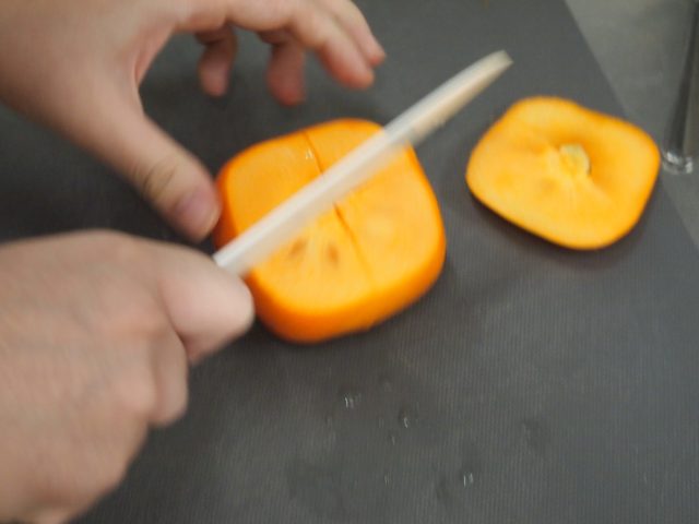 柿のヘタ部分を切り、放射状に切れ目を入れます。