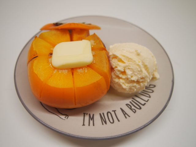 トースターで10分ほど焼いたら、バターやアイスを乗せて完成です。