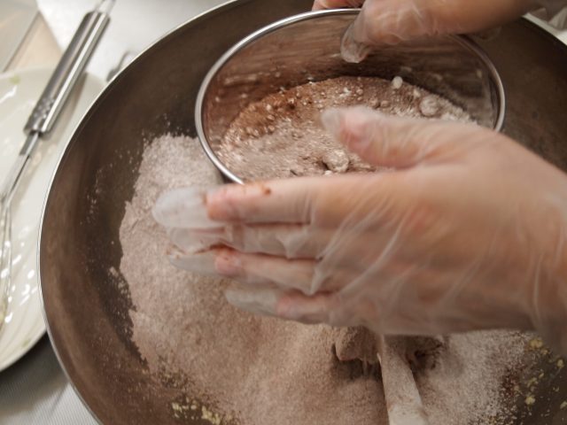 作り方は、まずビターチョコと生クリームでガナッシュを作り、一度冷やし固めます。 次に、外側のマフィン生地を材料を混ぜて用意します。 あとは、型に生地を流し込み、丸めたガナッシュを中に入れて生地でフタをし、焼き上げれば完成です。