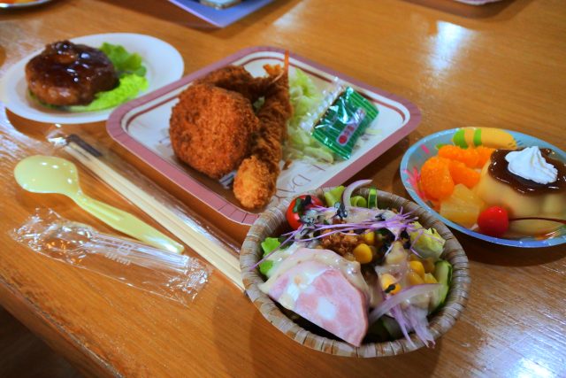 今回のお食事メニューはハンバーグやカレー、揚げ物3種盛り🍤