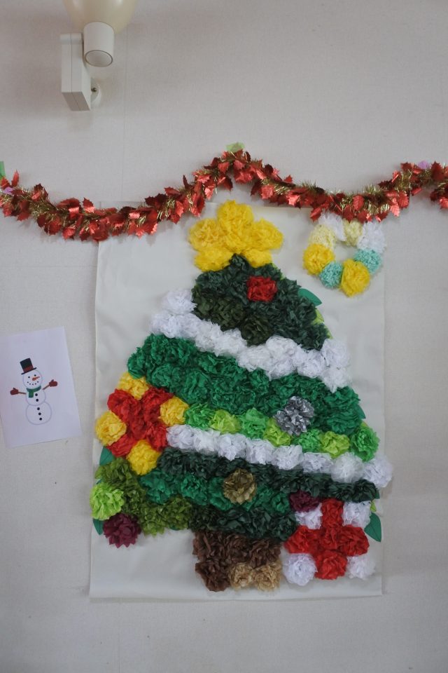 とても素敵なリースやクリスマスツリーが完成し、クリスマス会に華を添えていただきました✿