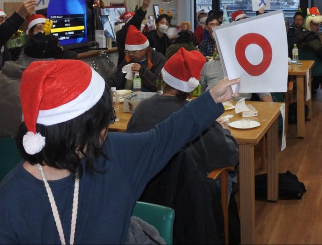 カレーライスやサラダ、ピザを楽しんだり、チーム対抗でクリスマスに関する〇×クイズを楽しみました!