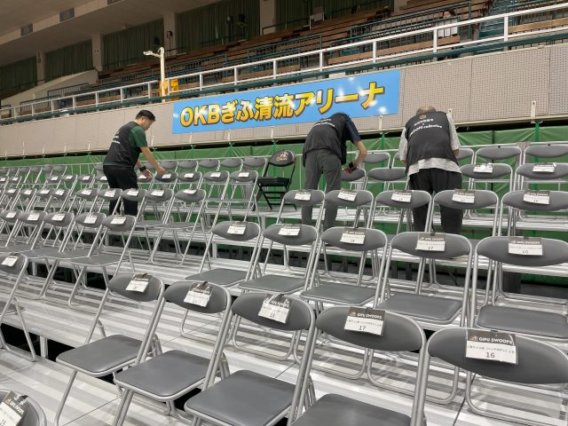 これから働くことを目指す応援センターの登録者の方や福祉事業所を利用している方等を対象とした岐阜バスケットボール株式会社様との就労体験(会場設営)ですが、いよいよ2025シーズンが始まりました。