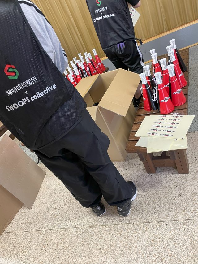3年目の今年度は、午前と午後で2回開催を企画しており、10月3日に行った1回目は、多くの新しい参加者の方を迎えてスタッフのみなさんと会場を準備しました。午後の準備の合間には、選手の方に「ありがとう!」と声をかけていただき、大変励みになりました。